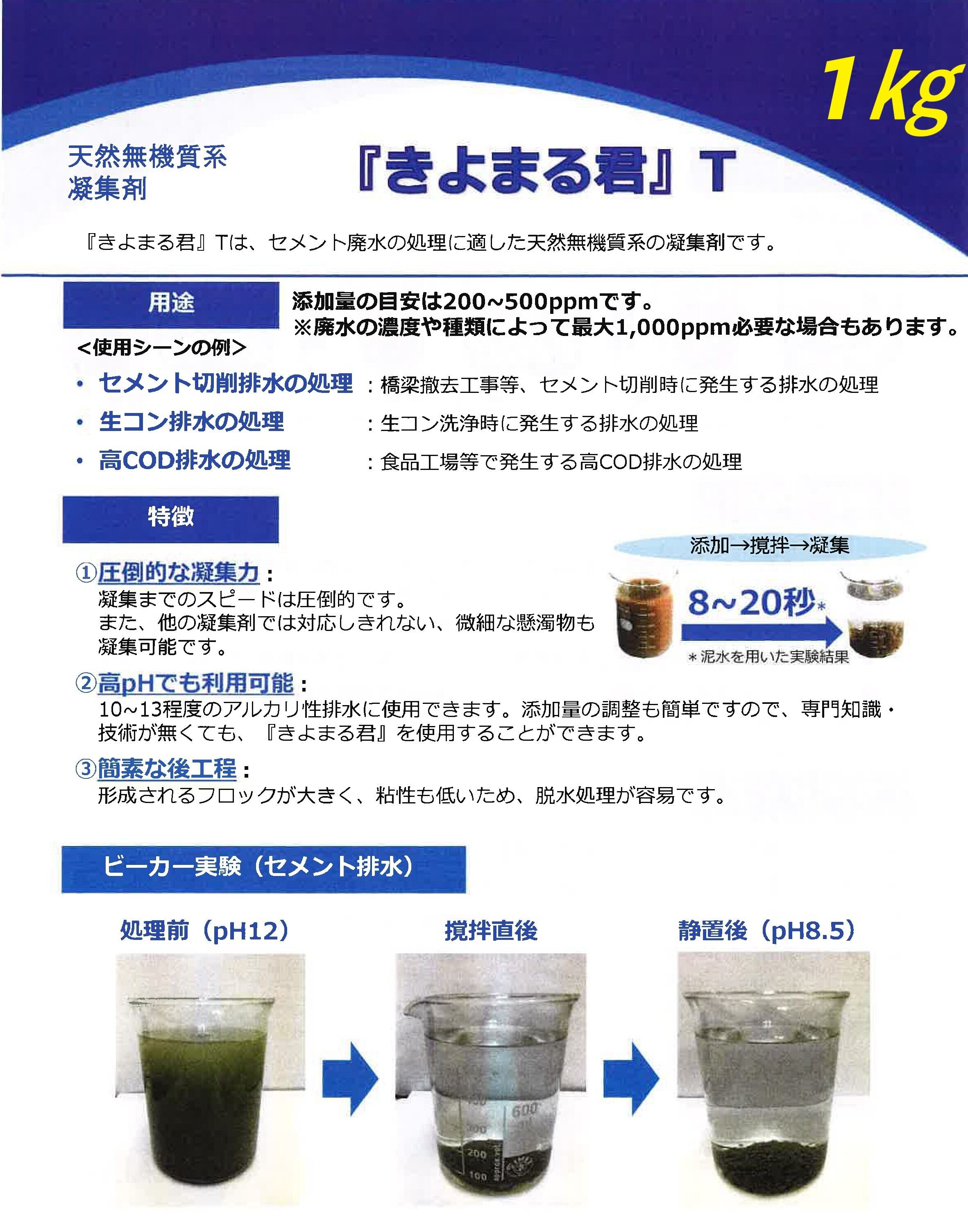 【1㎏】「きよまる君」T セメント排水処理に適した天然無機質系凝集剤!