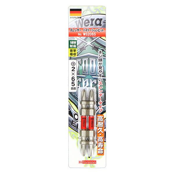 【ドイツWera社製】 スレンダーバイトーションビット +2x65mm 2本入 WS2065 ※取り寄せ品