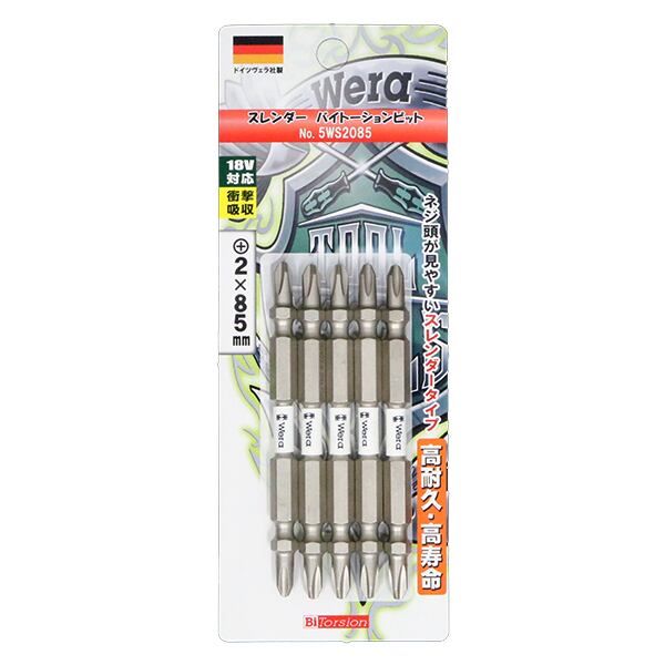 【ドイツWera社製】 スレンダーバイトーションビット +2x85mm 5本入 5WS2085 ※取り寄せ品